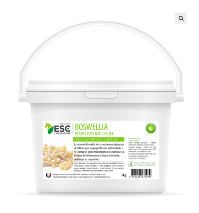 La résine de Boswellia est utilisée pour ses propriétés apaisantes en cas de sensibilités articulaire, pulmonaire ou digestive chez le cheval.