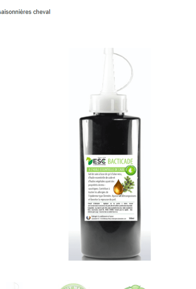BACTICADE – A l’huile de cade – Soin externe démangeaisons saisonnières cheval